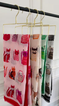 Elevate your outfit with this women's cat scarf, featuring a vibrant pop of color and charming feline print. Measuring 185cm in length and 90cm in width, this rectangular scarf is crafted from polyester, ensuring machine washability for effortless maintenance. Its versatile, animal print design showcases a variety of colorful cats, making it a must-have for cat enthusiasts looking to express their love for their furry companions. Not only is this scarf a stylish accessory, but it also serves as a practical one. The lightweight fabric makes it suitable for all seasons, functioning as a neck warmer in cooler months and as a stylish accent in warmer weather. This scarf also makes for the perfect gift for any cat-loving woman!