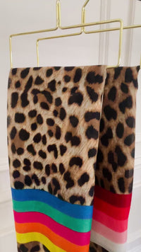 - Large animal leopard print shawl scarf with multi colour red stripes.