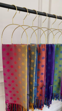 Add a bright, cheerful touch to your wardrobe with this vibrant, large yellow multi-colour dot print pashmina shawl scarf. Featuring an eye-catching print in a cheery colour, this stylish accessory will add a standout and fun statement to any look.