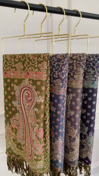 Discover the luxury of our Large Purple Reversible Multi Colour Paisley Print Pashmina Shawl Scarf Wrap. Crafted with a unique and classy paisley design, the soft yet weighted fabric will keep you warm in style. Its elegant purple shade makes it a timeless and sophisticated accessory.